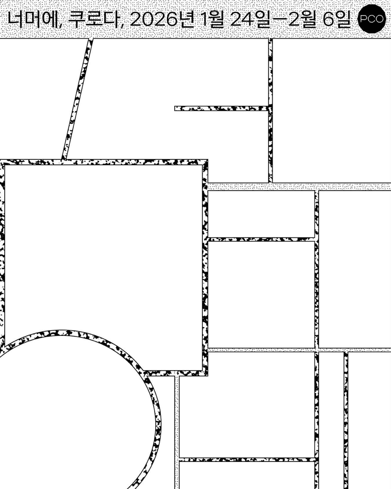 칸과 칸 사이의 여백을 뜻하는 ‘칸새’는, 각각의 칸에 미처 다 담기지 못한 만화 속 시간-만화가의 시간-독자의 시간이 교차하는 공간이다. 쿠로다는 전시장을 가로지르는 벽 형태의 칸새를 통해서 장면들 사이의 여백과 만화의 창작 과정이 연결되어 있음을 상기시키고, 그 너머에 못다 그려진 서사의 바깥을 비춘다.