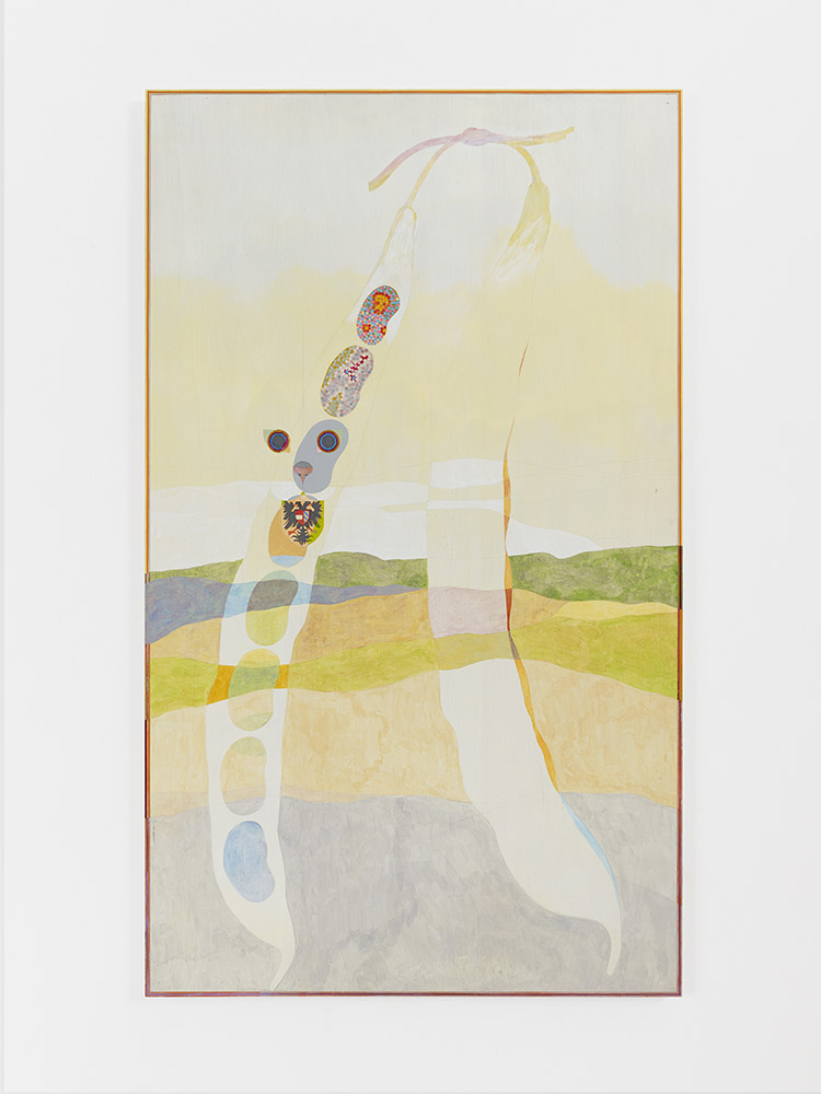 갤러리 외벽을 장식하는 대형 바이닐 설치 작업으로부터 비롯된 전시 제목, ‘Peas, Pod’는 한 가지로 고정되거나 규정되길 거부한 채 유연하게 변화하고 확장되는 ‘정체성’이라는 개념을 가리키며, ‘콩’이라는 반복적 모티프를 통하여 갤러리 내외부에서 시각화된다. 브라질 출신의 작가 호세 레오닐손(José Leonilson)의 다채색 페인팅 〈Untitled〉(1985)에서 영감을 받아 탄생한 보스만스의 콩 모티프는 희망, 성장, 재생에 대한 은유로 작동한다. 이번 전시작들은 ‘정체성’을 다층적인 경험으로 이루어진 개념으로 풀어내는데, 작가는 특히 퀴어 가족과 개인적인 유대 관계에 대한 사적인 기억을 바탕으로 누구나 공감할 수 있는 서사와 문화를 이야기한다. 보스만스는 이번 전시를 “목적(purpose)에 대한 개방적인 탐구”이자 “자신의 미술사적 위치를 탐색하는 작업”이라 일컫는다.