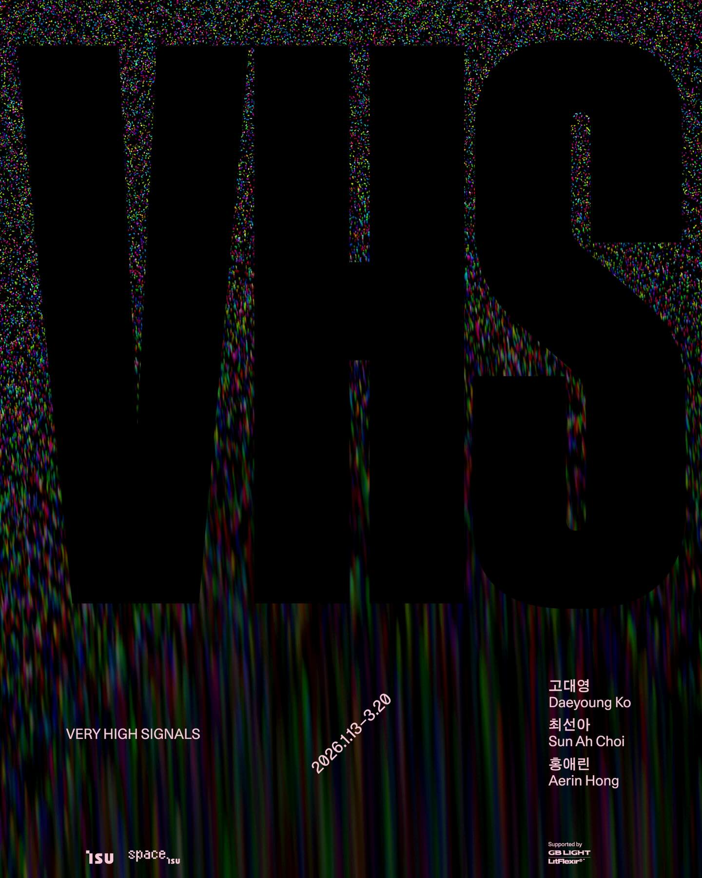 전시 《VHS(Very High Signals)》는 타인에게 가닿기 위해 만들어진 여러 신호의 모음이다. 전시가 열리는 장소인 스페이스 이수는 크고 작은 사건들이 예측가능한 범위에 머무는 회사 로비 공간이다. 이번 전시에서 신호처럼 제시되는 작품들은 로비 공간에 함의되는 여러 조건이나 기대에 사소한 균열을 만든다. 작가들은 루틴, 시뮬레이션, 여러 힘의 잔류와 증폭 등의 과정을 거쳐 물질을 입은 이미지와 소리의 형태로 작품을 제시한다. 주로 이 물질과, 이미지, 소리는 자동차와 속도, 컴퓨터 게임, 점토와 포맥스 등 원초적인 에너지와 친숙한 재료와 일상을 요소로 삼지만, 응시할 대상을 조금씩 소거하는 방식으로 날카로운 긴장과 강박적 요청과 신뢰와 편안함 사이를 오간다.